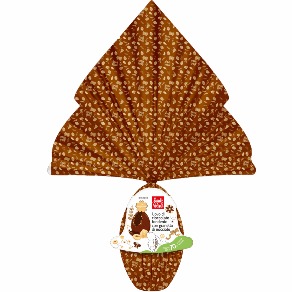 Una Pasqua all’insegna del biologico, della qualità delle materie prime e della sostenibilità. È questa la filosofia che guida la proposta 2026 di Baule Volante, che amplia la propria gamma con il nuovo Uovo di cioccolato fondente con granella di nocciole bio